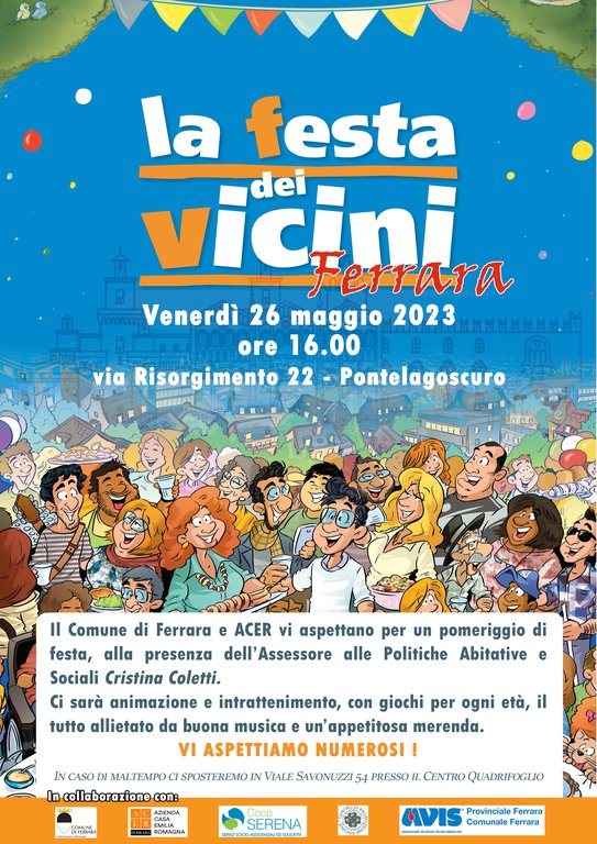 Il Comune di Ferrara e ACER vi aspettano per un pomeriggio di festa alla presenza dell’Assessore alle Politiche Abitative e Sociali Cristina Coletti.