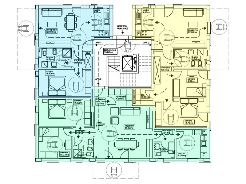 Diverse sono alcune scelte legate ad elementi di finitura interna ed esterna oltre che relative alla distribuzione degli alloggi.