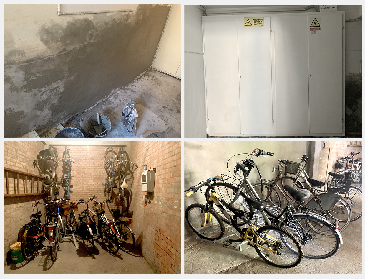 Riverniciatura armadietto, acquisto porta biciclette e ripristino intonaco atrio.